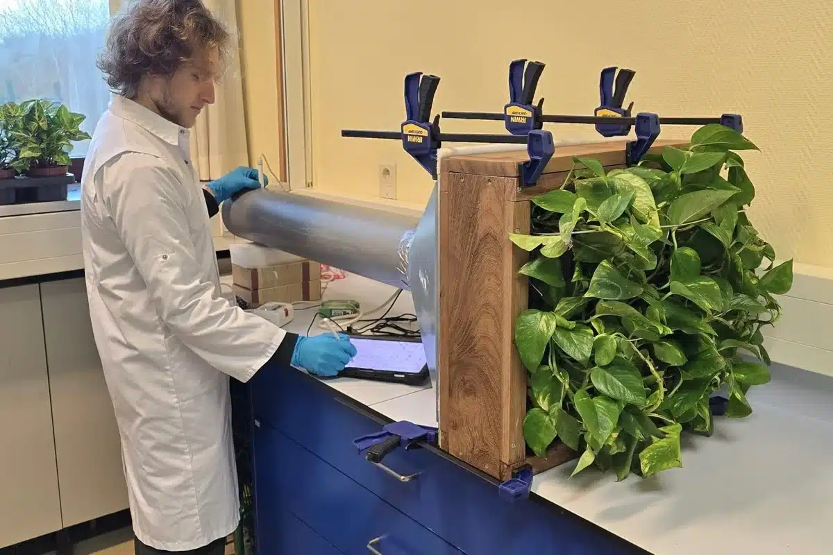 Het idee is slim en simpel: lucht wordt actief langs de wortels van planten geleid. Daar leven kleine organismen (microben) die samen met de planten schadelijke stoffen uit de lucht opeten en afbreken. “We hebben getest met concentraties die vijf keer hoger waren dan wat normaal gezien nog veilig is. Het systeem werkte perfect”, legt Seppe uit. “En hoe vaker je het gebruikt, hoe beter het werkt.”