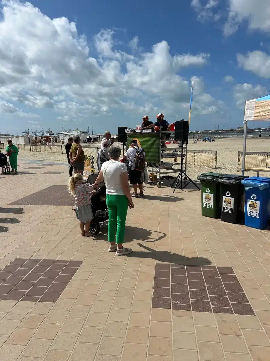 Het straattheatergezelschap Kartje Kilo begeeft zich deze week op een bijzondere missie langs alle tien kustgemeenten. Met hun mobiele radiostudio brengen ze ter plaatse live reportages voor wandelaars op de zeedijken en strandgangers. Door middel van humor en theater proberen de performers als de personages Martial en Noël bezoekers eraan te herinneren hun zwerfvuil correct weg te gooien in de voorziene bakken of weer mee naar huis te nemen.