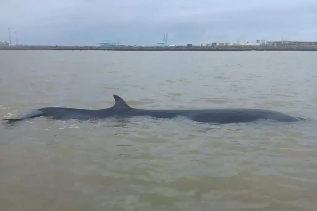 De zorg is terecht: de baai van Heist staat bekend om zijn zandbanken en ondiepe geulen. Rond 18 uur leek die vrees bewaarheid te worden toen het dier opnieuw gevaarlijk dicht bij de kust werd waargenomen.